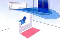 направление подачи воздуха из внутреннего блока в зависимости от температуры и
